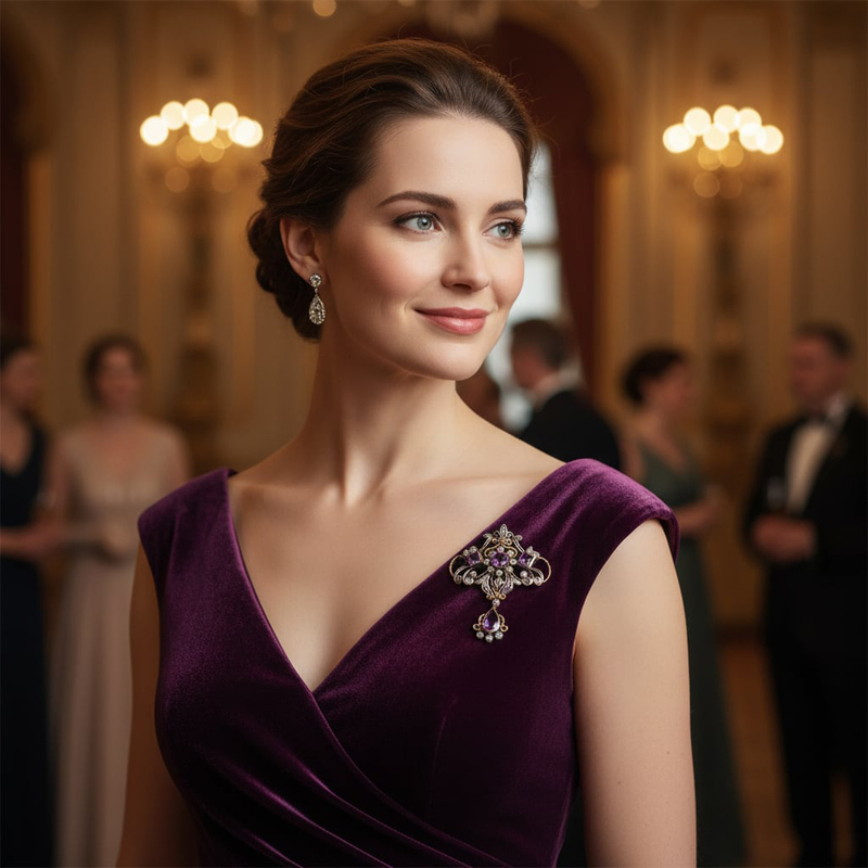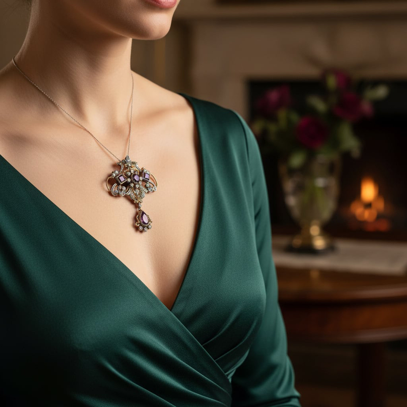 Dit type revivaljuwelen werd vaak vervaardigd door Nederlandse ateliers die zich lieten inspireren door antieke hofjuwelen en romantische 19e-eeuwse ornamentiek. Het resultaat is een sieraad dat de uitstraling heeft van een veel ouder juweel, maar comfortabel draagbaar is in het moderne leven.