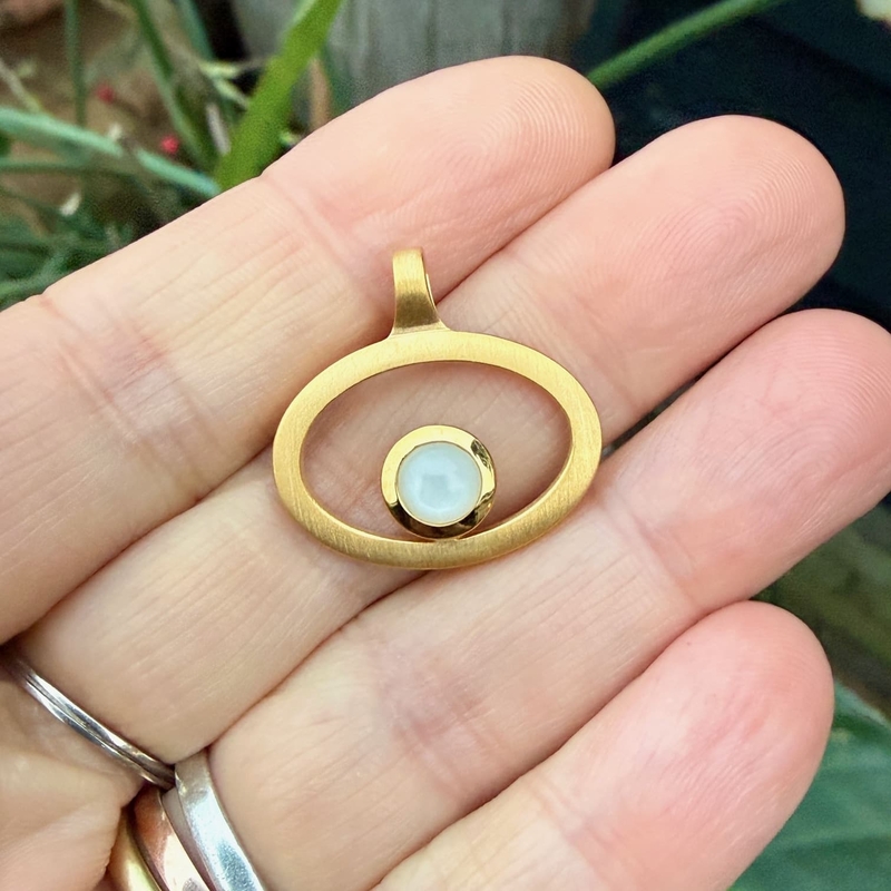 "Golden Eve Glow" is een tijdloos en elegante designhanger van verguld 925/- sterling zilver uit de collectie van Bastian Inverun. De betoverende witte maansteen (0,55 ct) laat de matte én gepolijste vlakken prachtig tot hun recht komen, waardoor de hanger een echte blikvanger is. Met veel oog voor detail en gevoel voor bijzondere, verfijnde accenten is deze hanger ontworpen door designer Nadine Resch.