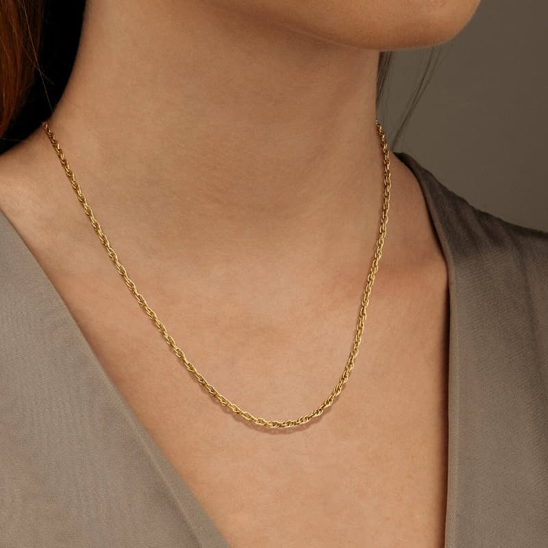De koordstructuur zorgt voor een levendige glans en een elegante lijn rond de hals. Door de titanium basis blijft het collier aangenaam licht, terwijl de vergulde afwerking het een luxe uitstraling geeft. Het stevige springslot sluit soepel en maakt wisselen eenvoudig.