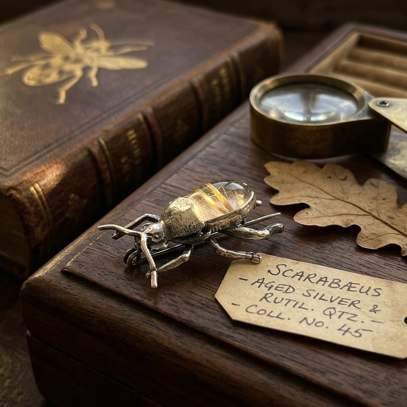 De mestkever staat sinds de oudheid symbool voor kracht, wedergeboorte en bescherming, waardoor deze broche niet alleen decoratief is, maar ook een betekenisvol draagbaar kunstwerk.