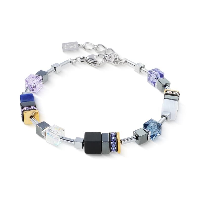 De Geocube® Precious Motion armband Blue Moon Bicolour Clear is een verfijnd sieraad dat de kenmerkende geometrische vormgeving van de Precious Motion-serie combineert met een opvallend kleurenspel. Deze armband is ontworpen om een visueel statement te maken, waarbij diepe en lichte tinten harmonieus samenkomen.