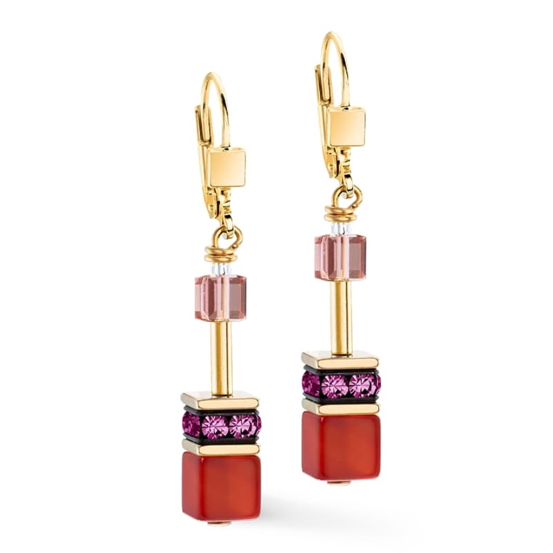 De GeoCUBE® Iconic Precious oorbellen Festive red is een opvallende keuze als je houdt van sieraden met kleur. Een mooie kubus van carneool in een levendig rode tint gecombineerd met Swarovski® kristallen en goudkleurig roestvrij staal. Samen geven ze de oorbellen een frisse, moderne en feestelijke uitstraling. Doordat ze slank en licht ogen, kun je ze makkelijk dragen bij zowel een simpele outfit als bij iets chiquers. Deze oorbellen worden met de hand gemaakt in Duitsland en zijn bedoeld als echte blikvanger.