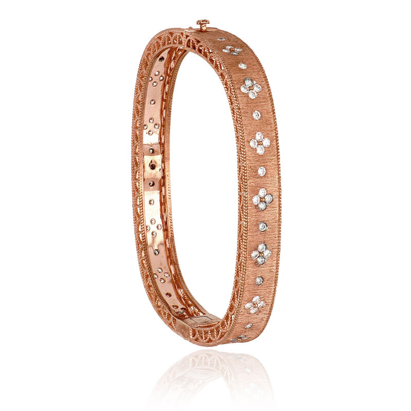 De Tsars Collection Etherna rosévergulde zilveren armband is een elegant sieraad dat geïnspireerd is op de stijl van Russische keizerinnen. De collectie combineert klassieke vormen met moderne technieken, waardoor het zowel traditioneel als eigentijds aanvoelt.