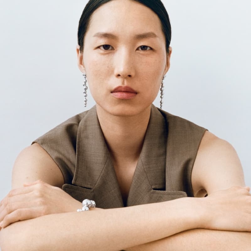 Geïnspireerd door de druivenmotieven in vroeg Georg Jensen zilverwerk, combineert de Moonlight Grapes collectie op kunstzinnige wijze verwijzingen naar de natuurlijke vormen die zo gangbaar waren in de Art Nouveau met grafische durf. De 1e gehalte zilveren oorbellen zijn 5,9 cm lang, de diameter van de grootste bol is 8 mm.