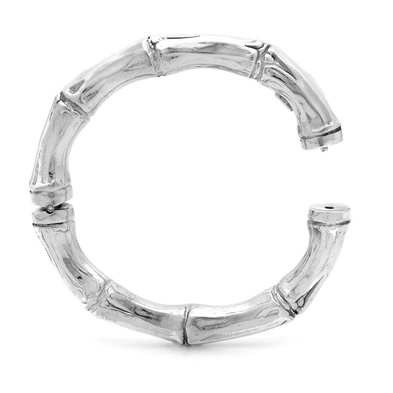 Deze zilveren bangle is ontworpen in de vorm van een verfijnde bamboetak en vervaardigd door de Italiaanse ontwerper Giovanni Raspini. De armband maakt deel uit van de Bamboo Collectie, waarin natuurlijke vormen worden gecombineerd met ambachtelijk vakmanschap.