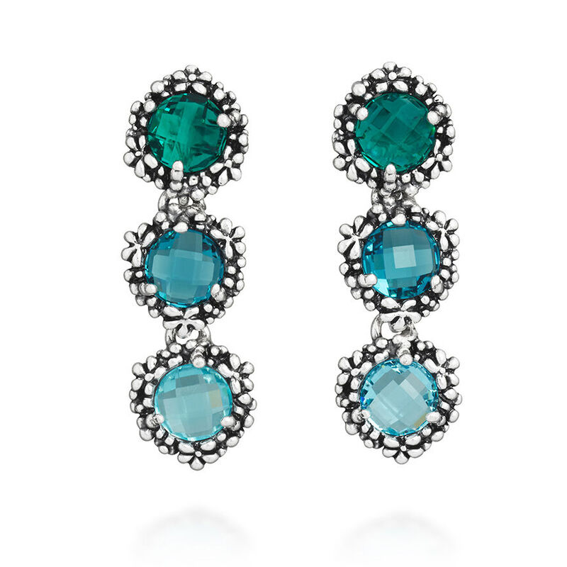 De Blue Ivy oorbellen combineren verfijnd vakmanschap met een artistiek ontwerp. Elk paar is zorgvuldig vervaardigd in het atelier van Giovanni Raspini en bestaat uit drie ronde, gefacetteerde kristallen in harmonieuze tinten van hemelsblauw, lichtblauw en smaragdgroen. Deze kleurencombinatie wordt versterkt door een bloemendecoratie die tot stand komt via de traditionele verlorenwasmethode.