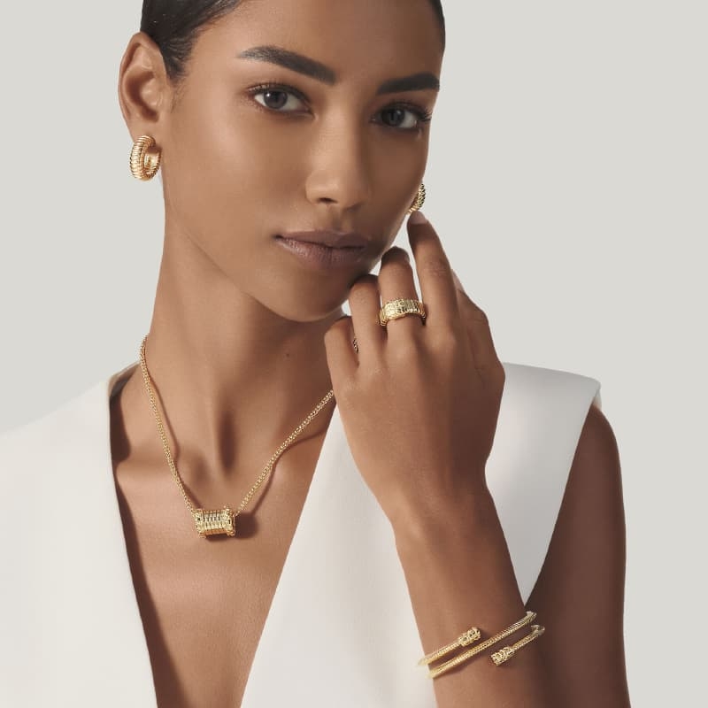 Warm verguld zilver vangt het licht in deze rigide tubogas-ring van Giovanni Raspini, uitgevoerd in verguld sterling zilver. Het ontwerp combineert een soepel ogende, geribde band met een centrale decoratie in croco-textuur, waardoor de ring een uitgesproken, stijlvolle aanwezigheid krijgt. Een eigentijdse statement ring met een elegant karakter, bedoeld om op zichzelf te dragen of te combineren met andere sieraden uit dezelfde collectie.