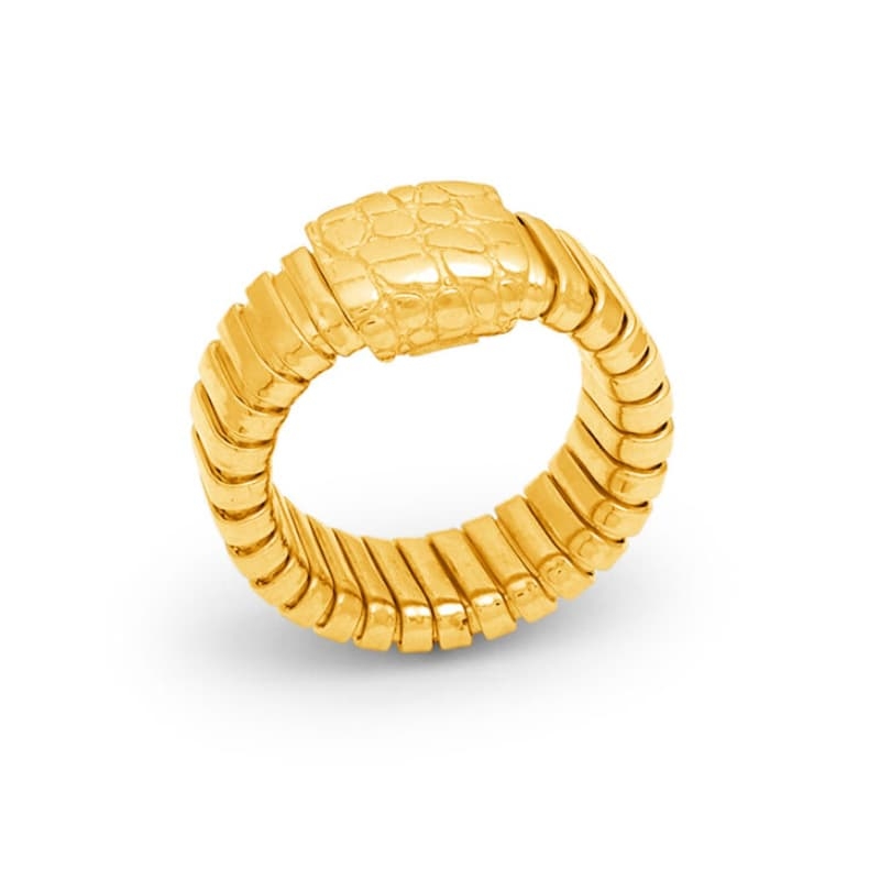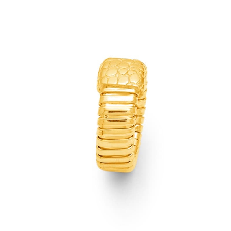 Door de stevige, rigide vorm draagt de ring opvallend en zelfverzekerd, perfect als dagelijkse blikvanger of als finishing touch bij een avondlook.