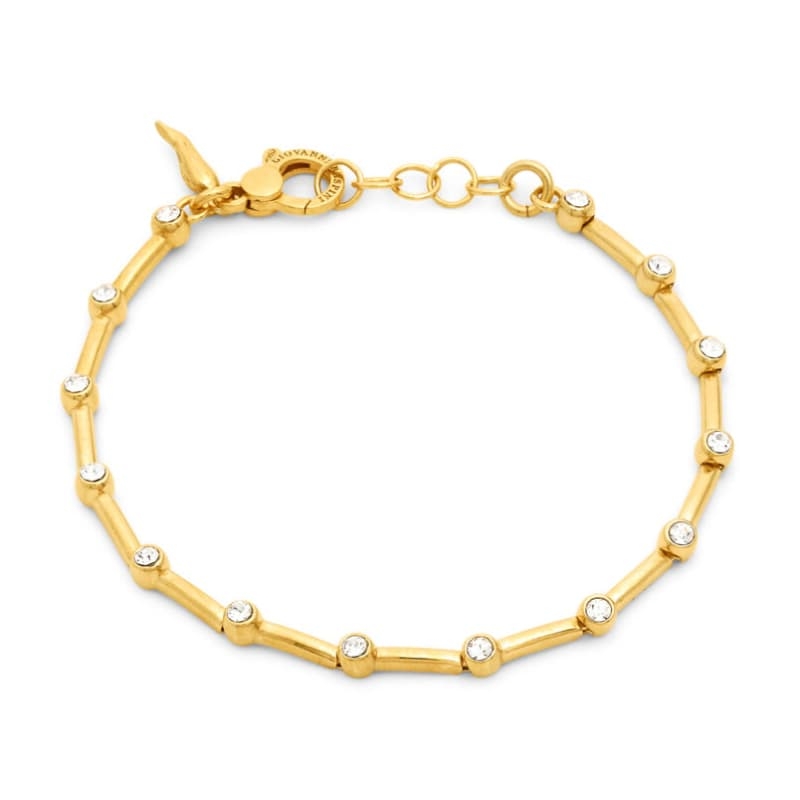 De warme vergulde glans en de subtiele fonkeling maken deze Giovanni Raspini armband een verfijnde keuze: licht om te dragen, sterk in uitstraling, en perfect om solo te dragen of te combineren met andere sieraden.