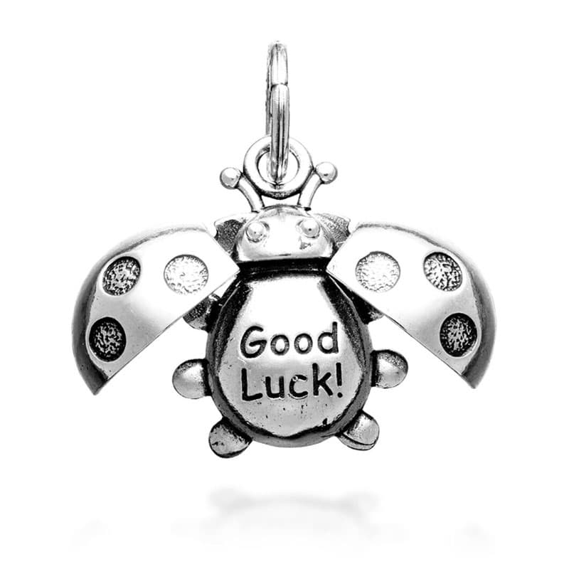 De vleugels kunnen zijwaarts openschuiven. Op het lijfje onder de vleugels staat de tekst 'Good Luck!' duidelijk leesbaar gegraveerd. Als symbool voor geluk is dit een helder motief dat met een stevig scharnier aan de bovenzijde van de hanger is bevestigd. De onderdelen sluiten precies op elkaar aan.