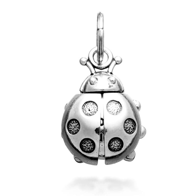De hanger is robuust vormgegeven en heeft een rustige, zilveren glans met donkere accenten in de dieper gelegen delen. Hierdoor komen de vormen van het lieveheersbeestje goed tot hun recht. Het sieraad draagt prettig en hangt stabiel aan een collier of armband.