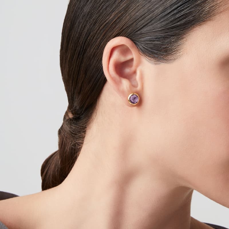 De Wisteria Loop Earrings zijn vergulde knopoorbellen van sterling zilver met in elke oorbel een kristal in een zachte blauweregen kleur. De ronde kristallen liggen “open” in een fijne, minimalistische ring, wat zorgt voor een frisse, elegante look die je moeiteloos elke dag draagt.