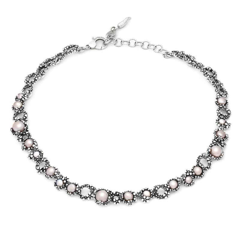 Sterling silver with natural pink pearls