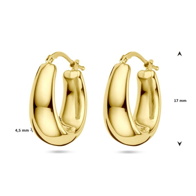 Geelgouden oorringen met een buis van 4,5 mm breed, uit de Home Collectie. De oorringen zijn gemaakt van 14 karaat geelgoud met een metaalgewicht van circa 3,06 gram. Diameter van de oorringen is 17 mm.