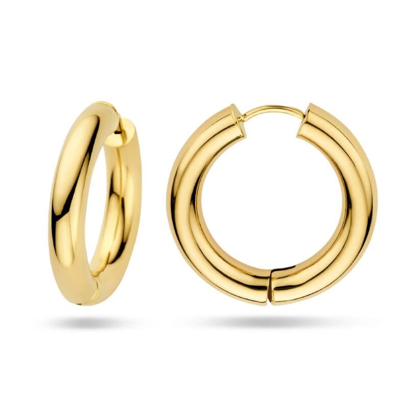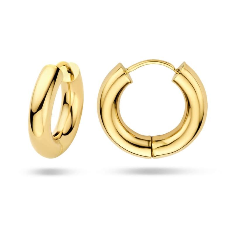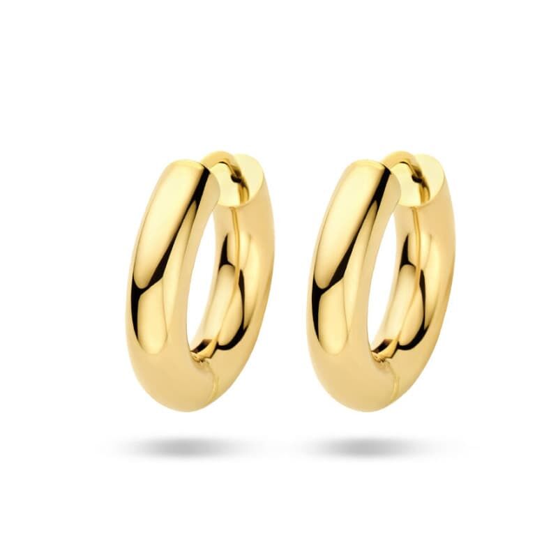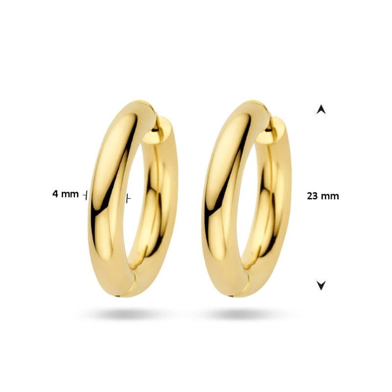 Deze klapoorringen zijn vervaardigd uit massief 14 karaat geelgoud en maken deel uit van de Home Collection. Het oppervlak is zorgvuldig gepolijst voor een stralende afwerking die langdurig behouden blijft. De ronde buis heeft een breedte van 4 mm, wat zorgt voor een opvallend maar stijlvol ontwerp dat geschikt is voor dagelijks gebruik of speciale gelegenheden.