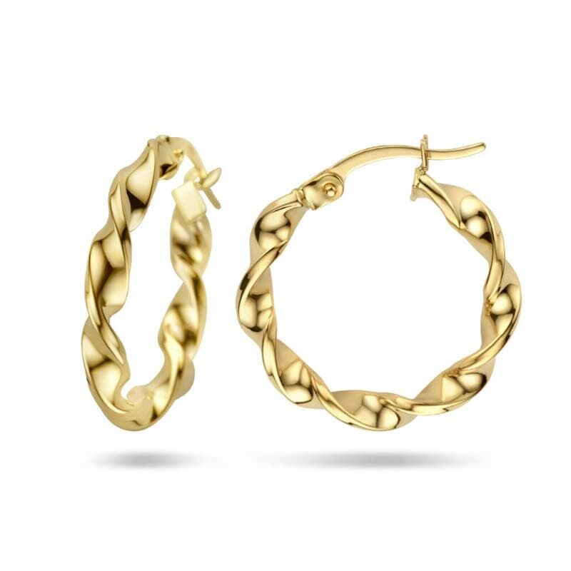 De oorringen hebben een totale hoogte van 20,5 millimeter en een breedte van 3 millimeter. Het geschatte metaalgewicht bedraagt circa 1,49 gram per paar. Deze proporties zorgen voor draagcomfort zonder concessies te doen aan uitstraling.