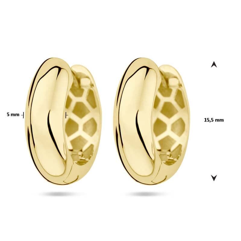 Deze 9k geelgekleurde klapoorringen zijn een fijne, casual keuze voor elke dag. Ze hebben een diameter van 15.5mm en sluiten makkelijk en stevig dankzij de klapsluiting.