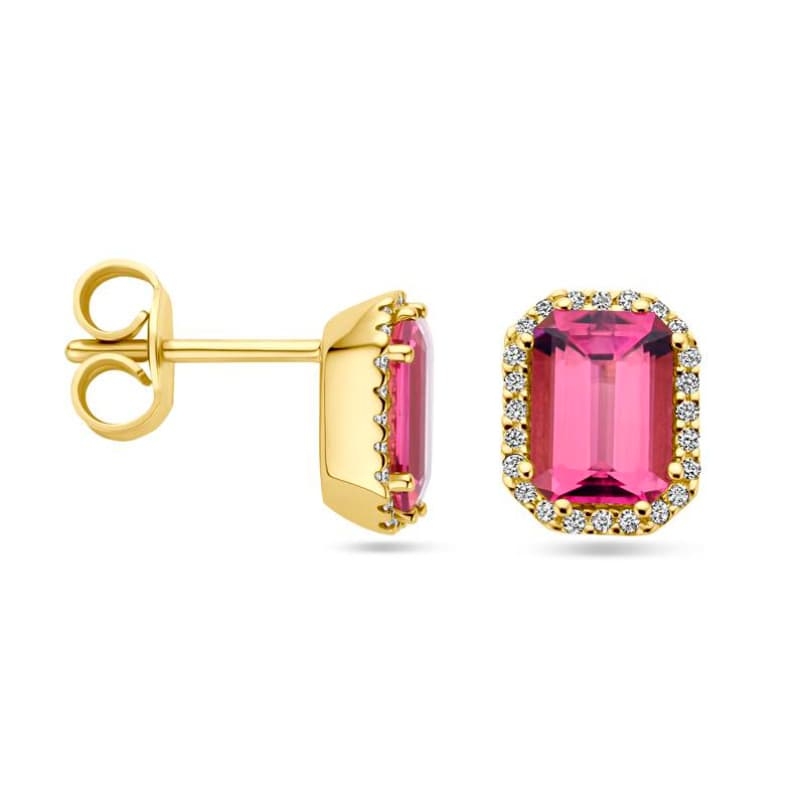 Deze 14 karaat geelgouden oorknoppen zijn een ware uiting van liefde voor vakmanschap. Met hun sprankelende roze toermalijn en schitterende diamanten stralen ze pure elegantie uit. Het Halo-model geeft de oorstekers een subtiele maar krachtige uitstraling die je niet snel vergeet.