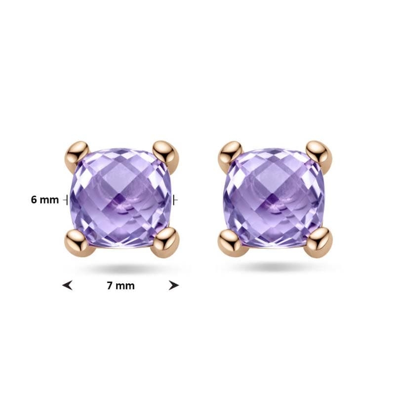 Deze 14 karaat roségouden oorknoppen zijn gemaakt voor wie houdt van subtiele luxe. Met een diameter van 7 mm ogen ze verfijnd, en in het midden zit een gefacetteerde amethist van 6 mm die mooi tot z’n recht komt door de warme gloed van het roségoud.
