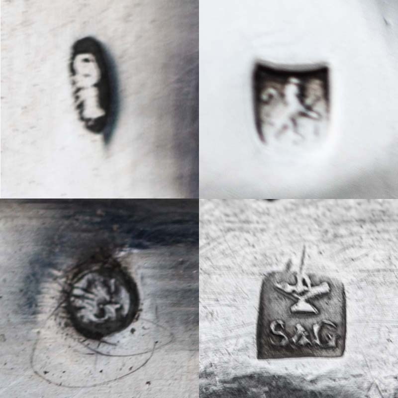 Deze met de hand gedreven zilveren koffiepot is een meesterwerk op zichzelf. Met een hoogte van 24,3 cm en een breedte van 26 cm van tuit tot oor, straalt dit unieke stuk vakmanschap elegantie en grandeur uit. Met een gewicht van 920 gram voelt het solide en waardevol aan, en het is zonder twijfel een opvallend pronkstuk.