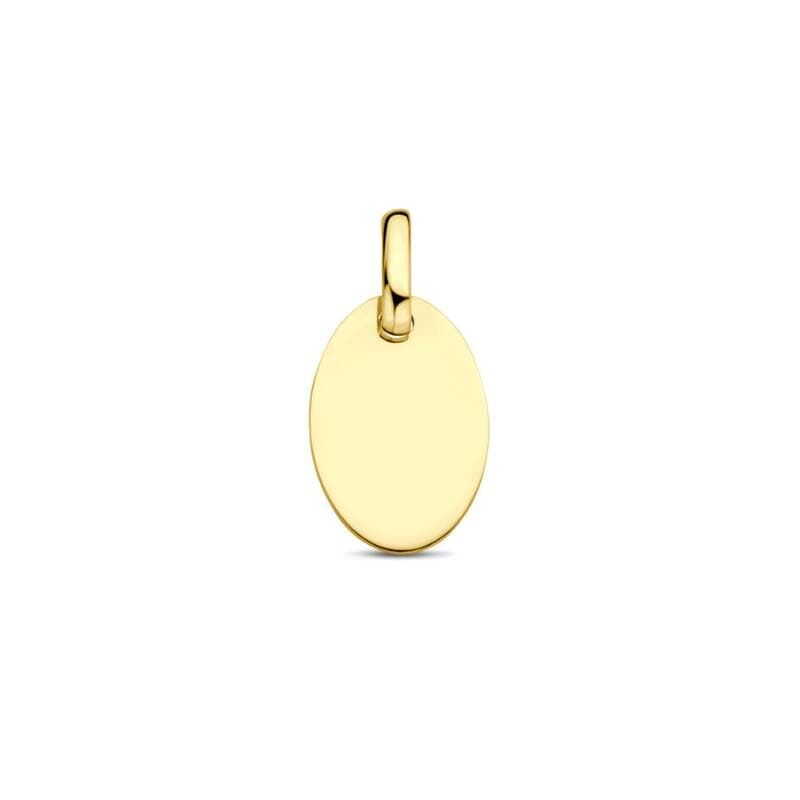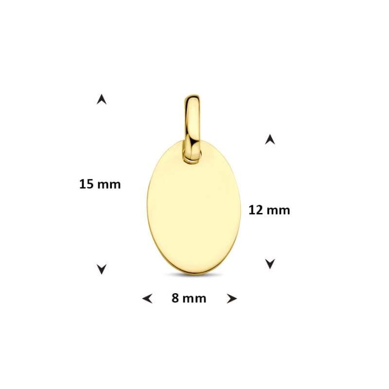 Deze hanger is vervaardigd uit 9 karaat geel en heeft een gepolijste afwerking. De ovale vorm geeft het sieraad een tijdloze uitstraling. Met een totale hoogte van 15 mm en breedte van 8 mm is dit accessoire subtiel maar opvallend genoeg om dagelijks te dragen.