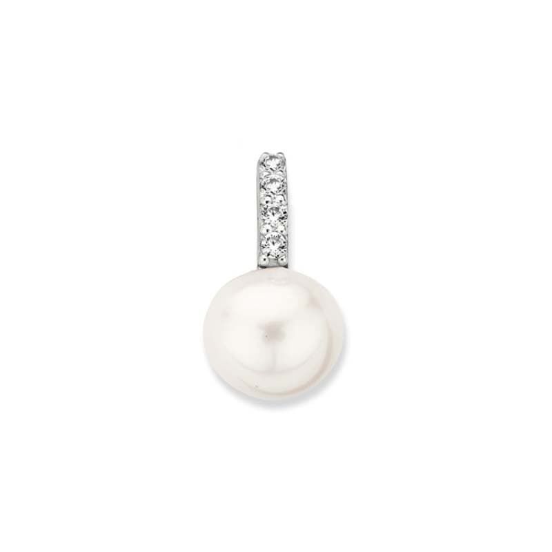 Deze geelgouden hanger van 14 karaat is klein, maar heeft een fijne uitstraling. De glans van het goud samen met de subtiele schittering van zirkonia’s en een witte zoetwaterparel maken 'm perfect voor elke dag. De voorkant van de lus is gerhodineerd, wat zorgt voor extra glans.
