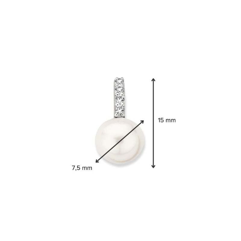 Het sieraad weegt 0,4 gram en heeft een totale lengte van 15 mm. De zoetwaterparel, met een verfijnde glans, heeft een diameter van 7,5 mm.