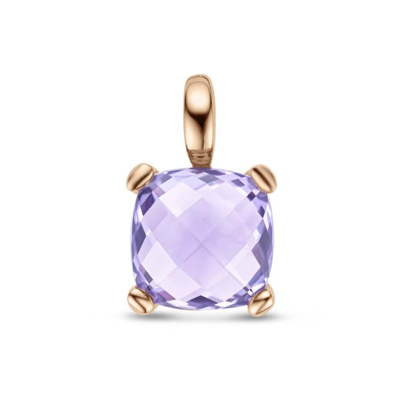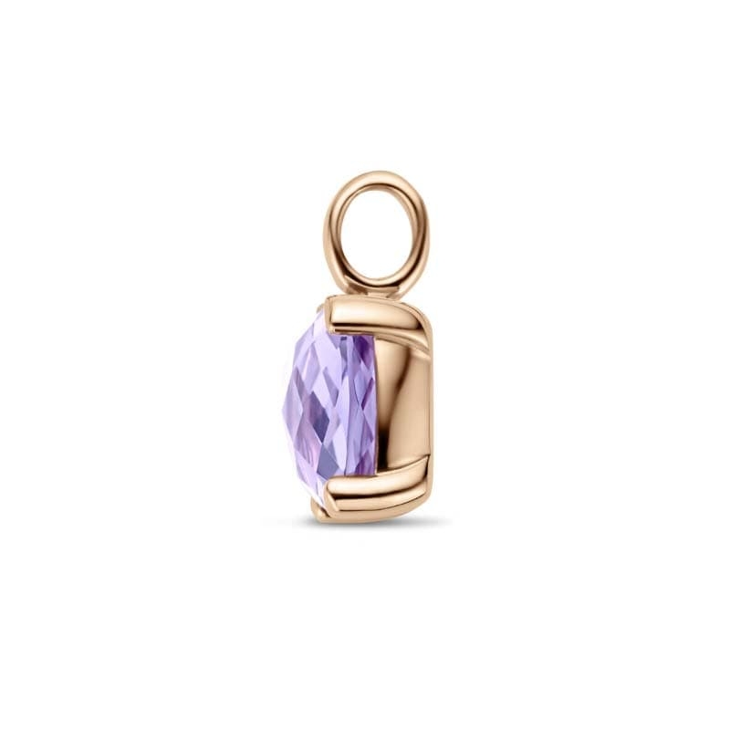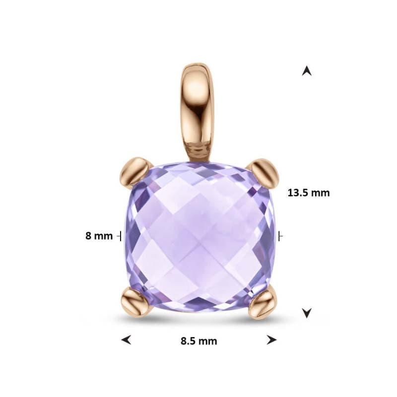 In het midden zit een gefacetteerde amethist met een volle paarse tint. De steen is stevig gezet in een klassieke chatonzetting met 4 pootjes, waardoor hij mooi licht vangt en prettig draagbaar blijft.