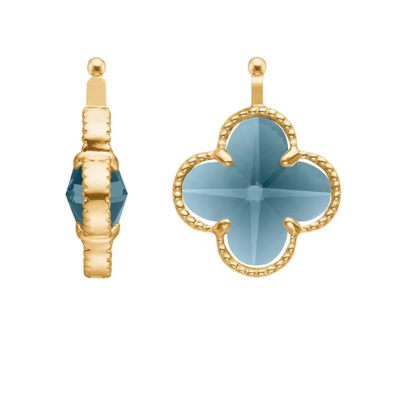 Heide Heinzendorff aanhangers in de vorm van een klaver. Leuke klaver aanhangers met blauw glas. De aanhangers zijn verkrijgbaar met een zilver of een verguld zilver montuur. U ontvangt de aanhangers in cadeauverpakking.