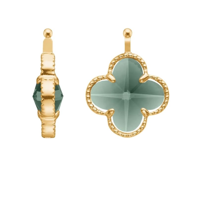 Heide Heinzendorff aanhangers in de vorm van een klaver. Leuke klaver aanhangers met donker groen glas. De aanhangers zijn verkrijgbaar met een zilver of een verguld zilver montuur. U ontvangt de aanhangers in cadeauverpakking.