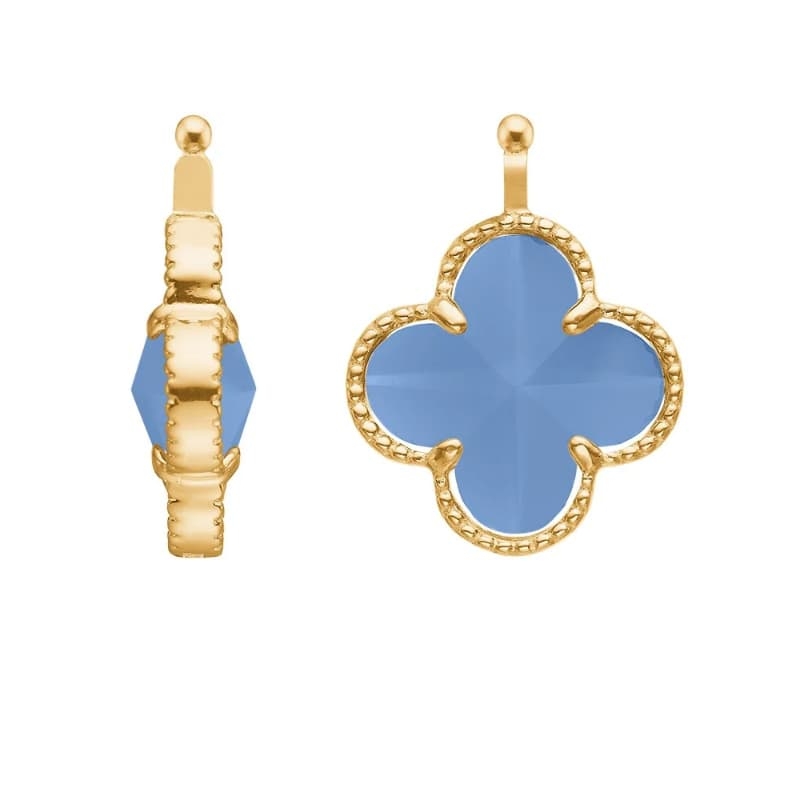 Heide Heinzendorff aanhangers in de vorm van een klaver. Leuke klaver aanhangers met hard blauw glas. De aanhangers zijn verkrijgbaar met een zilver of een verguld zilver montuur. U ontvangt de aanhangers in cadeauverpakking.