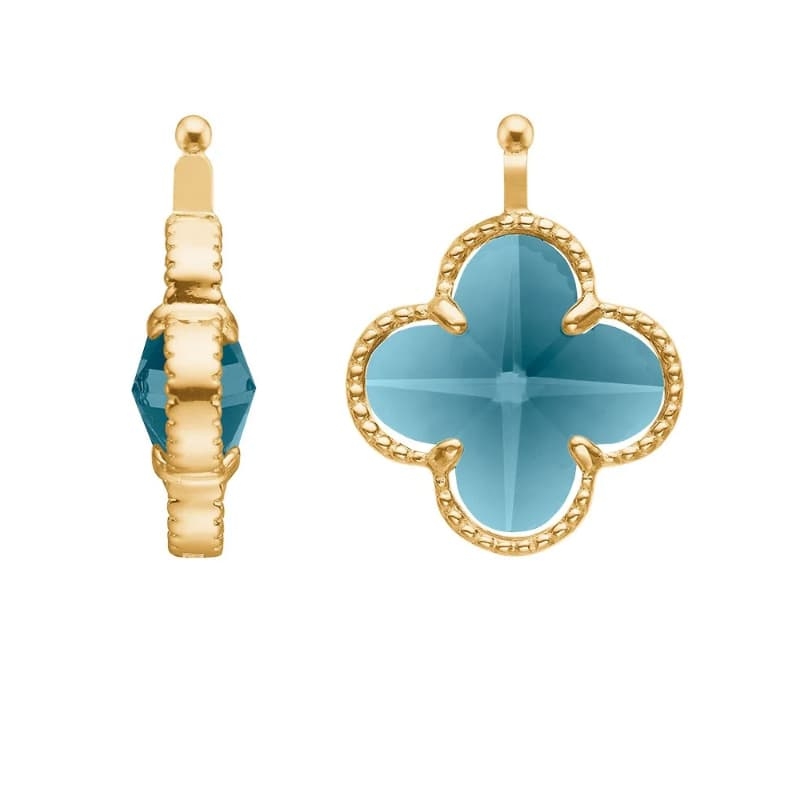 Heide Heinzendorff aanhangers in de vorm van een klaver. Leuke klaver aanhangers met montan blauw glas. De aanhangers zijn verkrijgbaar met een zilver of een verguld zilver montuur. U ontvangt de aanhangers in cadeauverpakking.