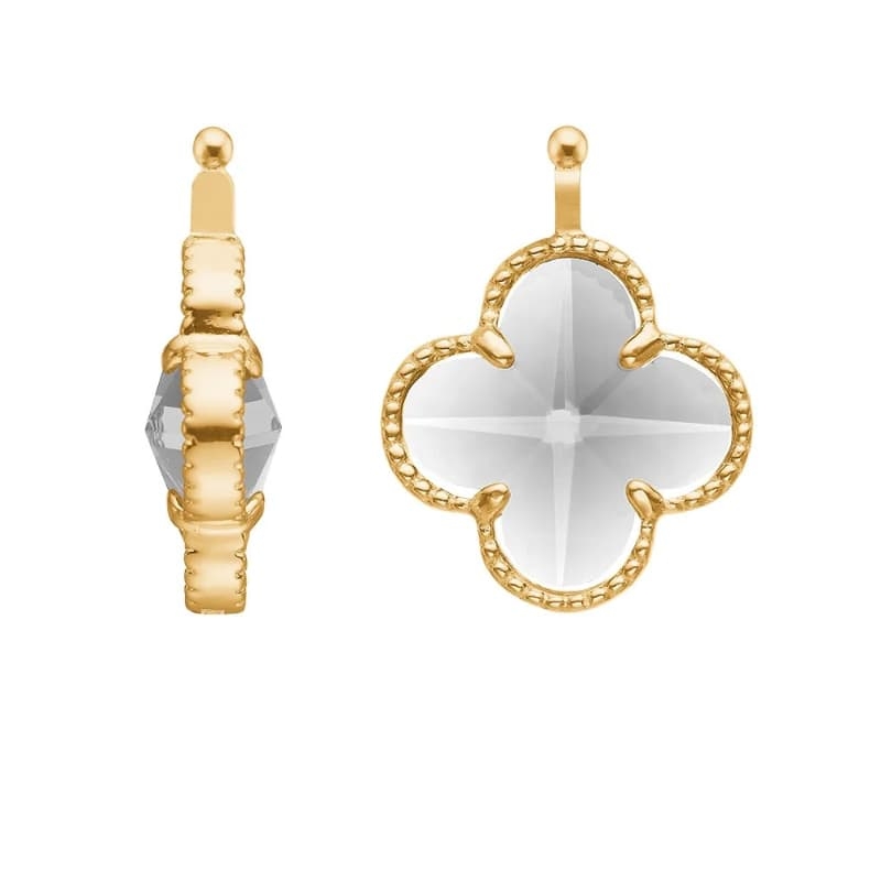 Heide Heinzendorff aanhangers in de vorm van een klaver. Leuke klaver aanhangers met transparant glas. De aanhangers zijn verkrijgbaar met een zilver of een verguld zilver montuur. U ontvangt de aanhangers in cadeauverpakking.