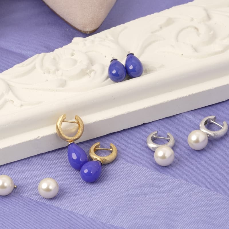 Het ontwerp is gemaakt om moeiteloos te combineren: de matte finish van de oorringen geeft een rustige, stijlvolle achtergrond, zodat zowel de blauwe druppels als de witte kristal parelaanhangers mooi tot hun recht komen. Zo creëert u met dezelfde basis oorringen telkens een andere sfeer.