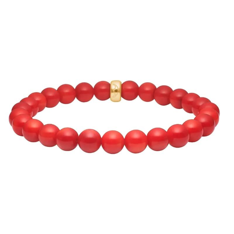 Tussen de kralen zit een stijlvol tussenelement van verguld sterling zilver. Dit geeft de armband een luxe detail en zorgt voor een mooie combinatie van rood en goud.