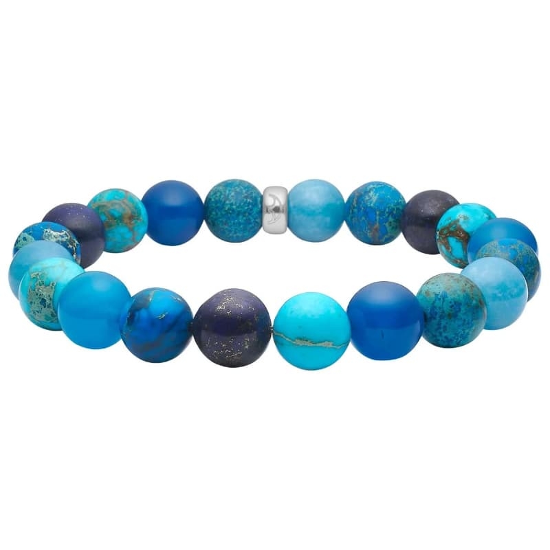 Dit is een opvallend en vrolijk armband in mooie blauw- en turquoisetinten uit de collectie van Heide Heinzendorff. De kleuren geven je outfit meteen een frisse en stijlvolle uitstraling. Of je nu iets simpels draagt of juist wat chiquer, dit armband maakt het helemaal af.