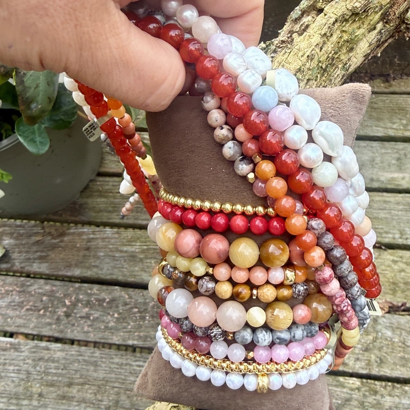 Elke steensoort heeft een eigen look. Tijgeroog heeft vaak een mooie gloed, jade oogt fris en jasper geeft een stoere, natuurlijke touch. Samen zorgen deze stenen voor een vrolijk en expressief effect. Het is precies zo’n armband die je blijft bekijken, omdat er zoveel in gebeurt qua kleur en uitstraling.