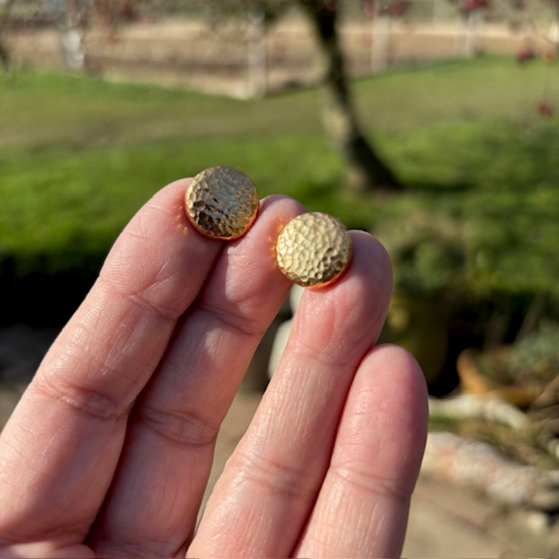 De ronde basic oorsteker "Ann" is vervaardigd uit hoogwaardig gehamerd, geelverguld sterling zilver en heeft een diameter van 14 mm. Dankzij het tijdloze ontwerp en de geometrische vorm zijn deze oorbellen geschikt voor elke gelegenheid.