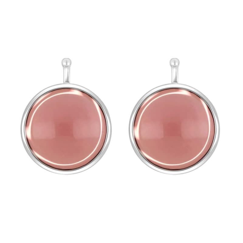 Prachtige zilveren ronde aanhangers in model E73 kleur 11 bezet met bol geslepen glas in de kleur roze uit de collectie van Heide Heinzendorff. De combinatie van mooi cabochon geslepen glas, gezet in een open zilveren omlijsting, de achterkant is hetzelfde als de voorkant, creëert een elegante en luxueuze uitstraling die ongetwijfeld indruk zal maken.