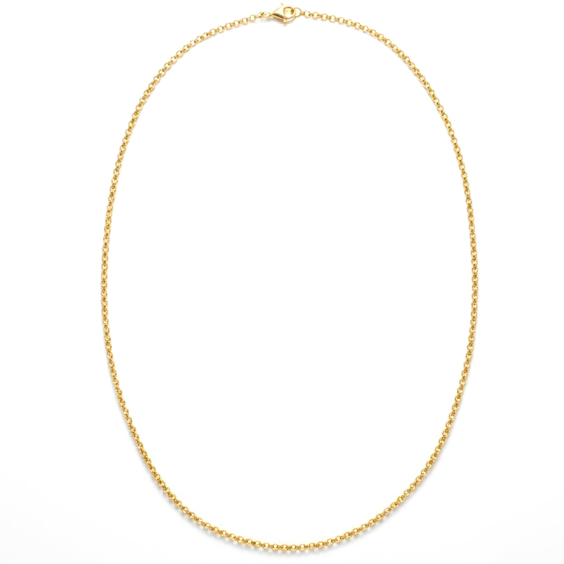 Dit collier is opgebouwd uit jasseronschakels: ronde, gelijkmatige schakels van 3 mm breed die soepel dragen en het licht rustig terugkaatsen. In deze lengte valt de ketting doorgaans wat lager op de hals en is hij geschikt om enkel te dragen of te combineren met een hanger voor een meer gelaagde uitstraling.