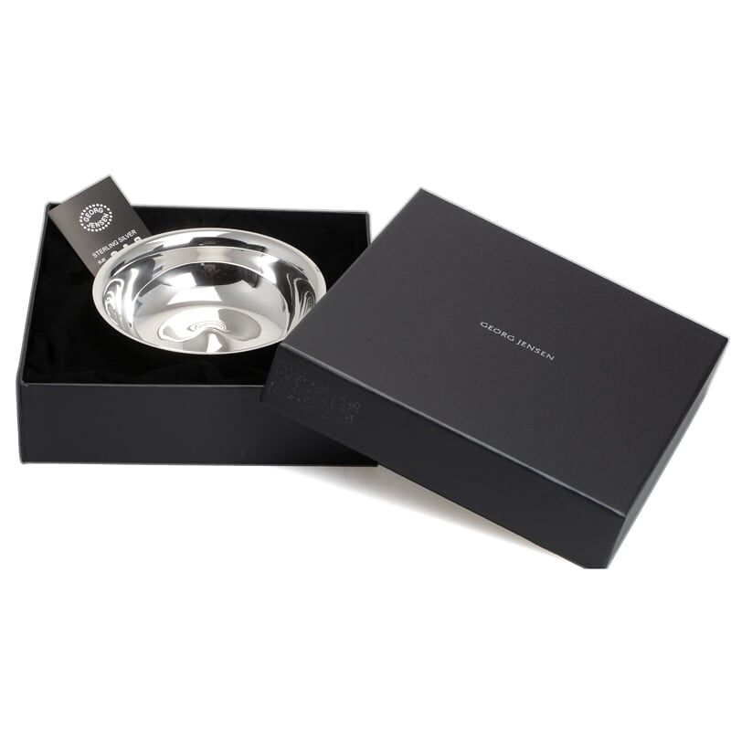 Limited Edition 1e gehalte zilveren papbord MY FAVOURITE ontworpen door ontwerpster Vivianna Torun Bülow-Hübe voor Georg jensen. Prachtig zwaar zilveren papbordje met een verhoogd middenstuk in de bodem om het eten uit het bordje makkelijker te maken. Het bordje heeft een diameter van 14 cm en is 4 cm hoog, het weegt 175 gram. Het bord wordt verstuurt in een luxe geschenkdoos van Georg Jensen.