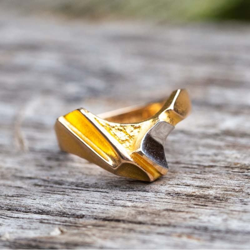 De ring is ontworpen door de bekende Finse ontwerper Björn Weckström. Hij staat bekend om zijn moderne, kunstzinnige sieraden met een eigen karakter. Zijn ontwerpen zijn vaak geïnspireerd op natuur en Scandinavische landschappen, wat ook goed te zien is in deze bijzondere creatie.