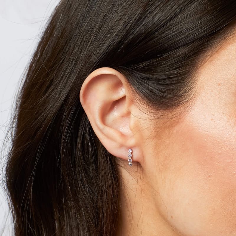 De oorringen zijn vervaardigd van 1e gehalte zilver en bezet met licht amethist stenen. Elke steen zit in een delicate zetting die lijkt op een klein bloempje. Daardoor krijgen de oorbellen een speelse, zachte uitstraling. Wanneer je beweegt, vangen ze het licht en fonkelen ze subtiel, precies genoeg om op te vallen zonder te overheersen.