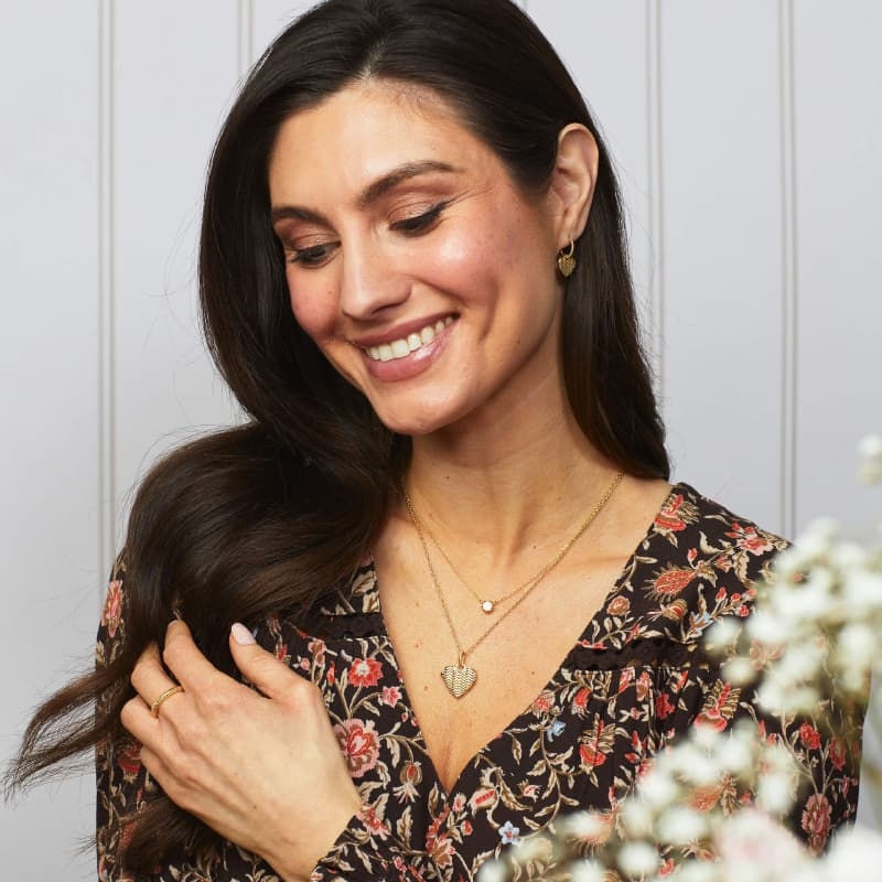 Deze ketting is gemaakt van verguld sterling zilver (925) en is geïnspireerd op de mooie Megan-print van Laura Ashley. Het ontwerp heeft zachte, ronde lijnen en een bloemvorm die rustig en verfijnd aanvoelt. Het is een tijdloos sieraad dat je makkelijk elke dag kunt dragen, maar dat ook perfect past bij een speciale gelegenheid.