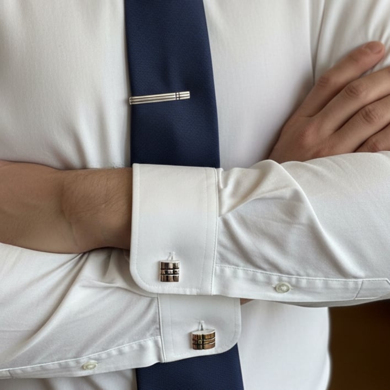 Manchetknopen worden gedragen bij overhemden met dubbele manchetten (ook wel Franse manchetten genoemd). Ze vervangen de standaard knoopsluiting aan de mouw en geven jouw outfit direct een elegante upgrade. Een dasschuif, ook wel dasclip genoemd, houdt je stropdas netjes op z’n plaats tussen het derde en vierde knoopje van je overhemd. Dit voorkomt dat je das verschuift tijdens bewegingen én voegt tegelijkertijd stijl toe aan jouw zakelijke of feestelijke look.