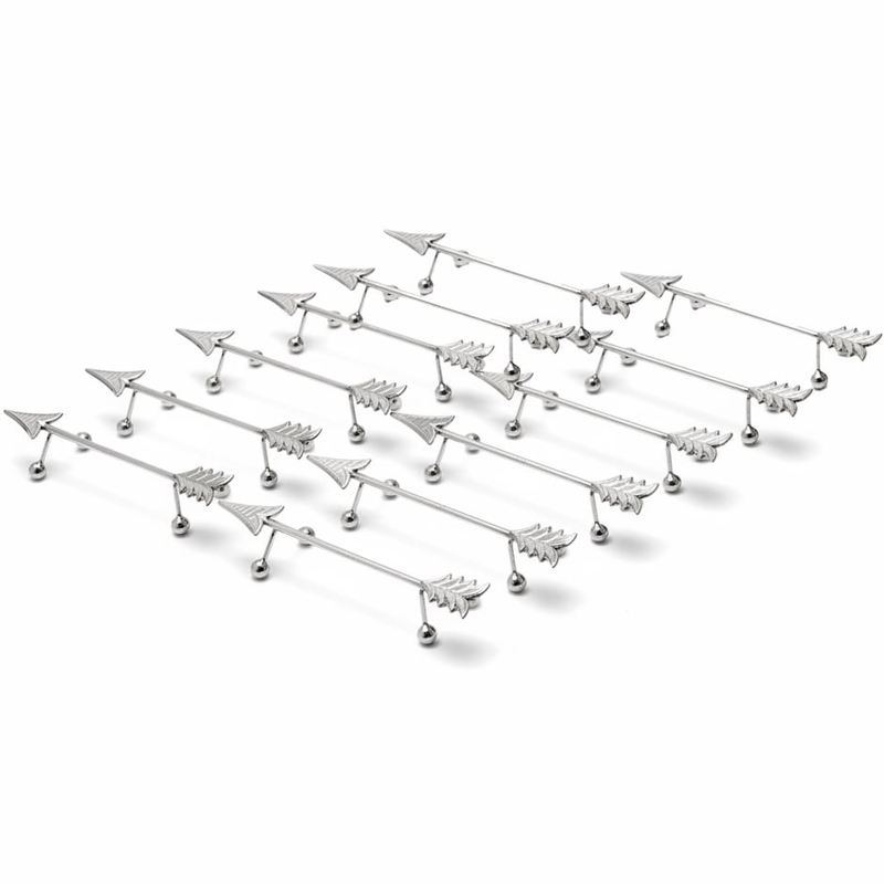 Set van 12 pijlvormige zilveren messenleggers, vervaardigd door W.A. Pluut te Schoonhoven in de periode 1926–1937. Deze bijzondere, slanke messenleggers zijn vormgegeven als een pijl en rusten elegant op bolpootjes. Ze verkeren in zeer goede staat en vormen een verfijnde aanvulling op een klassiek gedekte tafel.