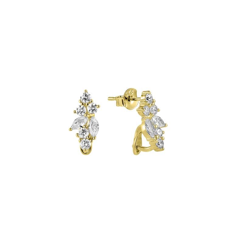 Aan deze vergulde oorstekers passen alle kristallen en natuurstenen uit de Carezza lijn. Door het slimme ontwerp kun je makkelijk verschillende kleuren en vormen wisselen. Zo kun je steeds een andere combinatie maken met hetzelfde sieraad.