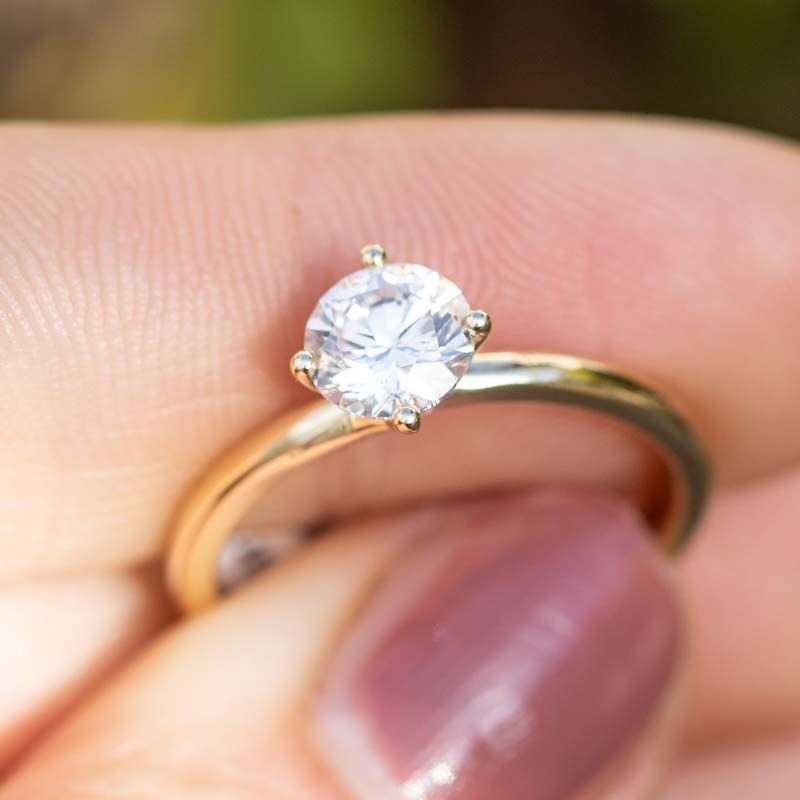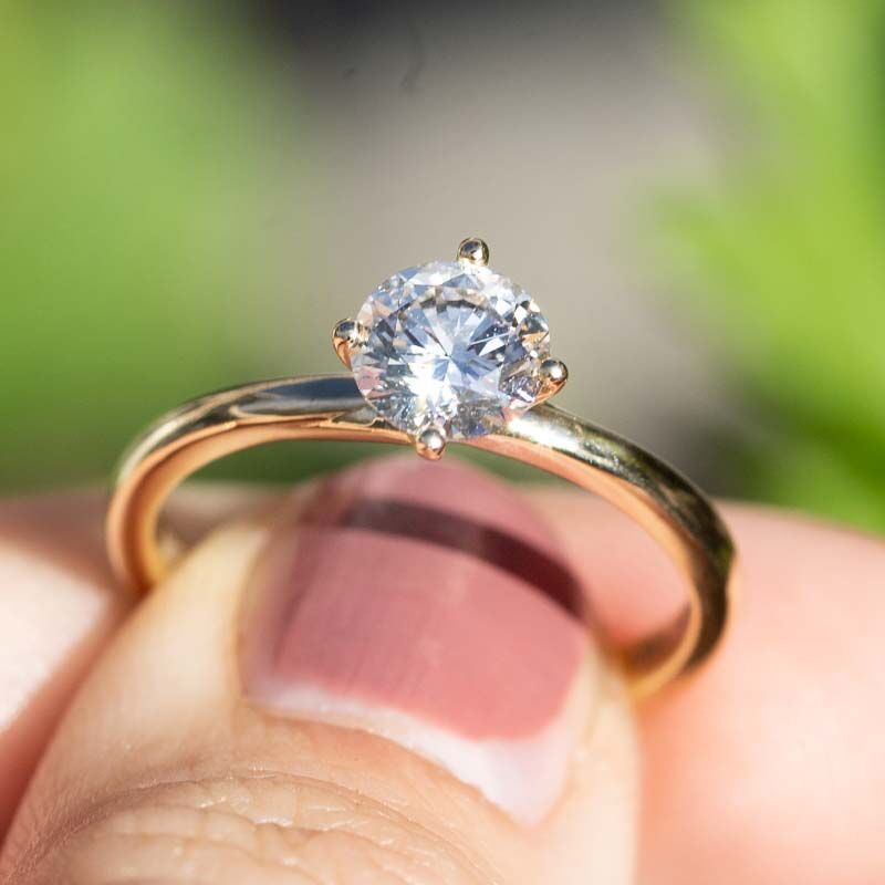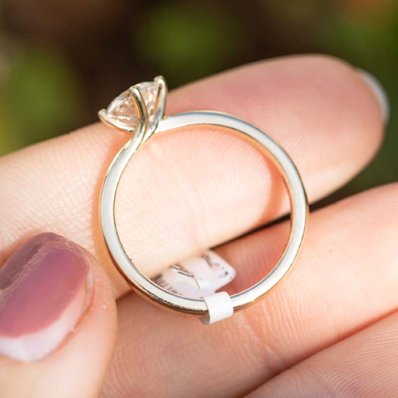 De diamant wordt vastgehouden door vier gedraaide pootjes. Deze speels gedraaide zetting geeft de ring een unieke en elegante uitstraling. Doordat de diamant mooi vrij ligt, kan het licht er optimaal doorheen vallen, waardoor de steen extra straalt. Zo komt de 1 karaat diamant echt prachtig tot zijn recht aan je vinger.