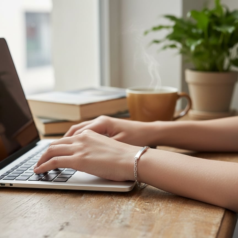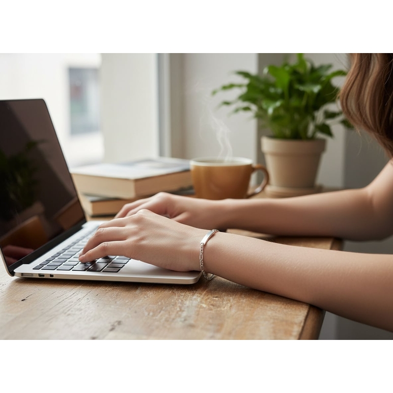 Zilveren armband met centraal naamplaatje voor gravure, geschikt voor tieners of dames met een smalle pols.