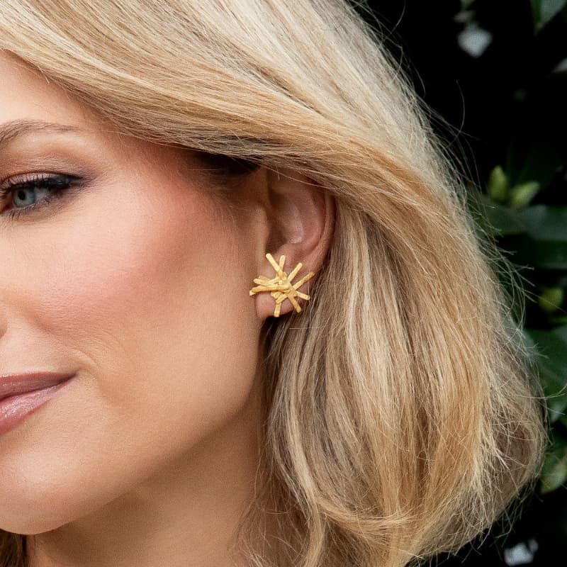 Deze prachtige oorstekers uit de Mikado Collectie zijn gemaakt van verguld 925 sterling zilver. De fijne, langwerpige elementen zijn speels en asymmetrisch gerangschikt, wat zorgt voor een opvallend ontwerp met een handgemaakte uitstraling. Het is een sieraad dat je elke dag kunt dragen, helemaal in combinatie met de bijpassende hanger.